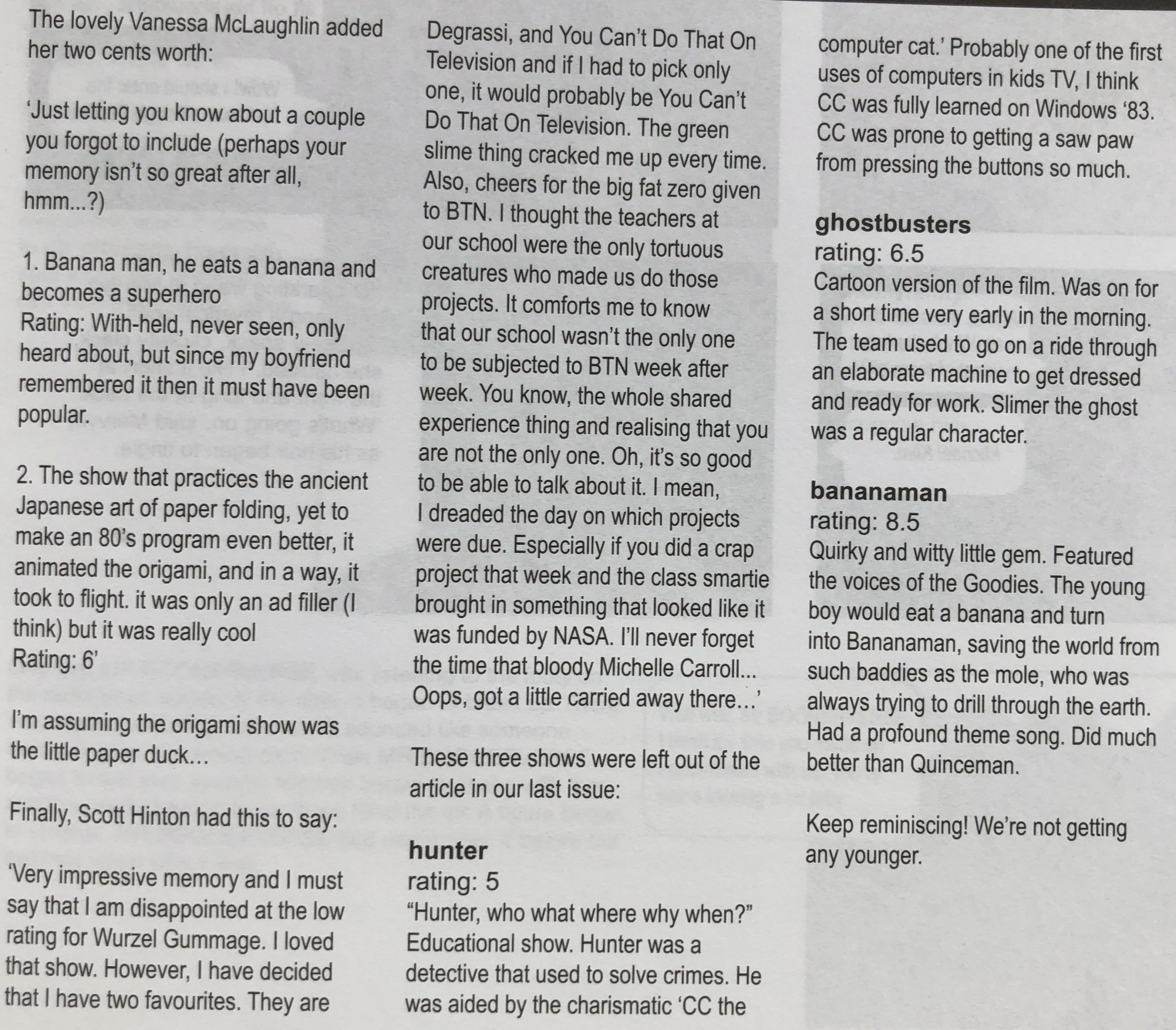 In a Beat interview I’d joked at the idea of the corresponding characters getting on the tram like a live film clip, but I couldn’t have foreseen anything so poignant. For those few minutes, art and life had combined, parody sitting comfortably next to tribute as the moons of satire and society slipping beneath each other, creating a humour eclipse more graceful than blinding. The 86 had sent a representative, on behalf of the people I had dwelled within for these past two years – a spirit guide with grey goatee and jeans – a solid father figure to acknowledge my daydream dedication.