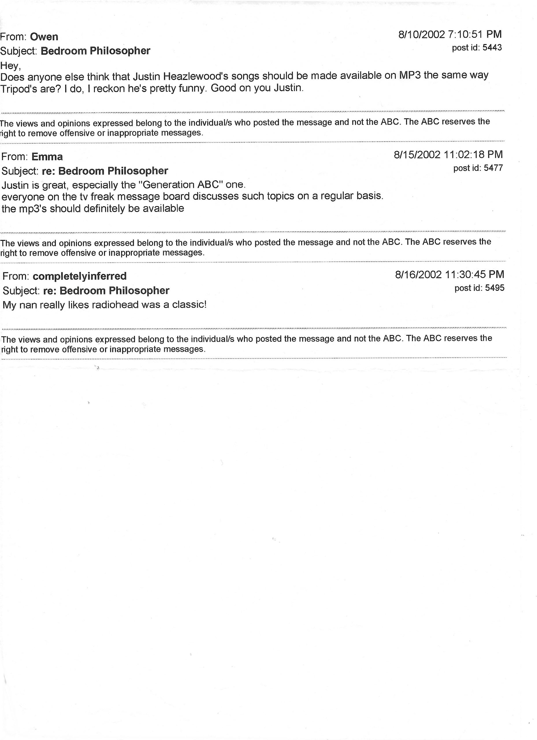 The following Monday we organised for Yarra Trams to let us to make one continuous journey over the hour, removing the awkward stopover. Tonight I was primed and organised. There would be only rock star brilliance and world class comedian riding the line between genius and knob. None of that emo waffle. I locked in, buckled down, fired up and folked out. It was, as they say in the industry, all good mate.